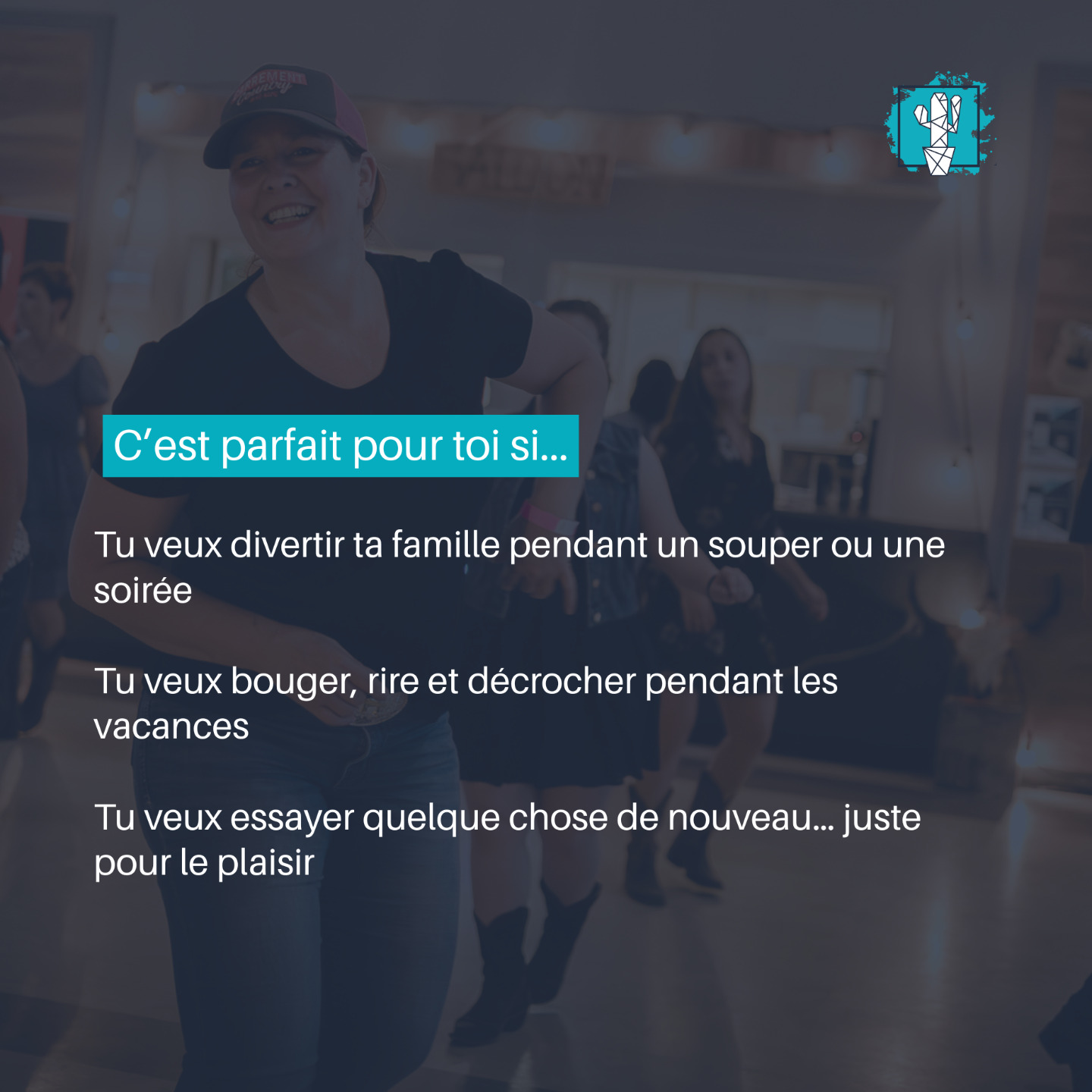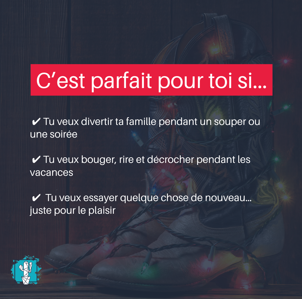 Pas besoin d’expérience, pas besoin d’avoir le rythme dans le sang, et encore moins d’un costume de cowboy…! Juste l’envie d’avoir du fun et de créer un moment mémorable avec ta gang !