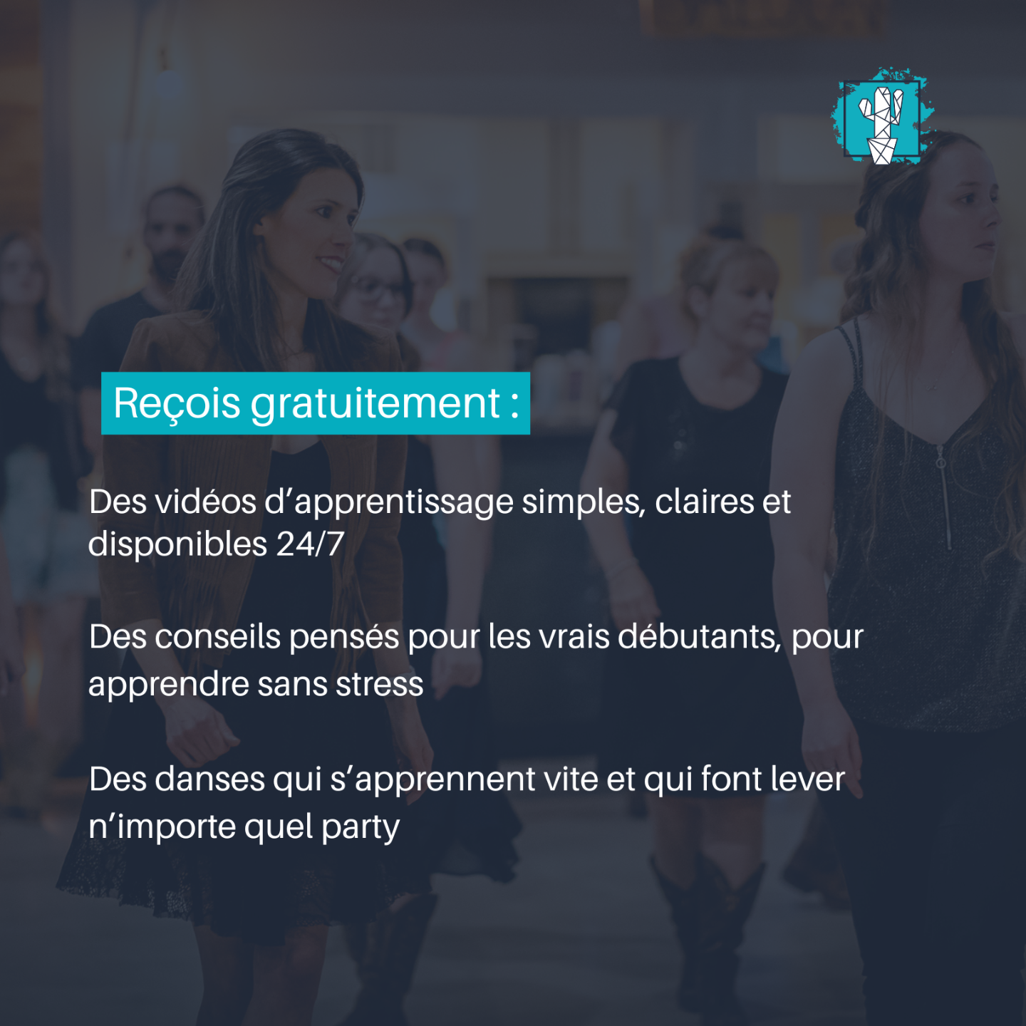 On t’a préparé 3 danses en ligne que tout le monde peut apprendre, guidées étape par étape par un vrai prof de danse, pour que tu te sentes en confiance dès les premières minutes.