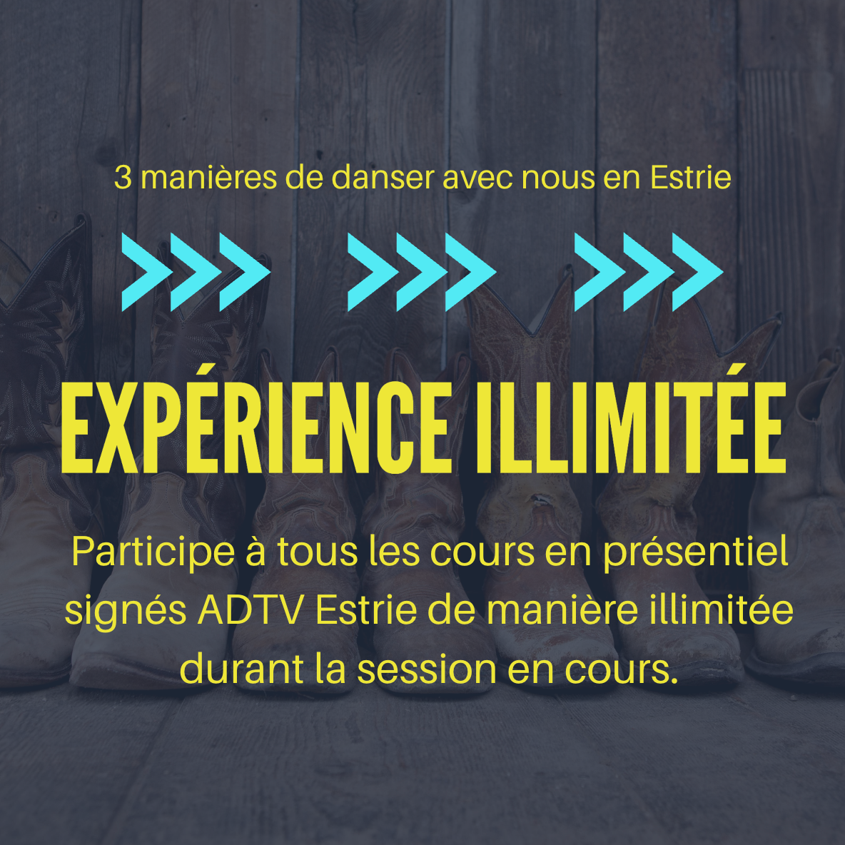 Prix exclusif aux soirées de danse country pop comprises dans la session en présentiel ADTV ESTRIE.